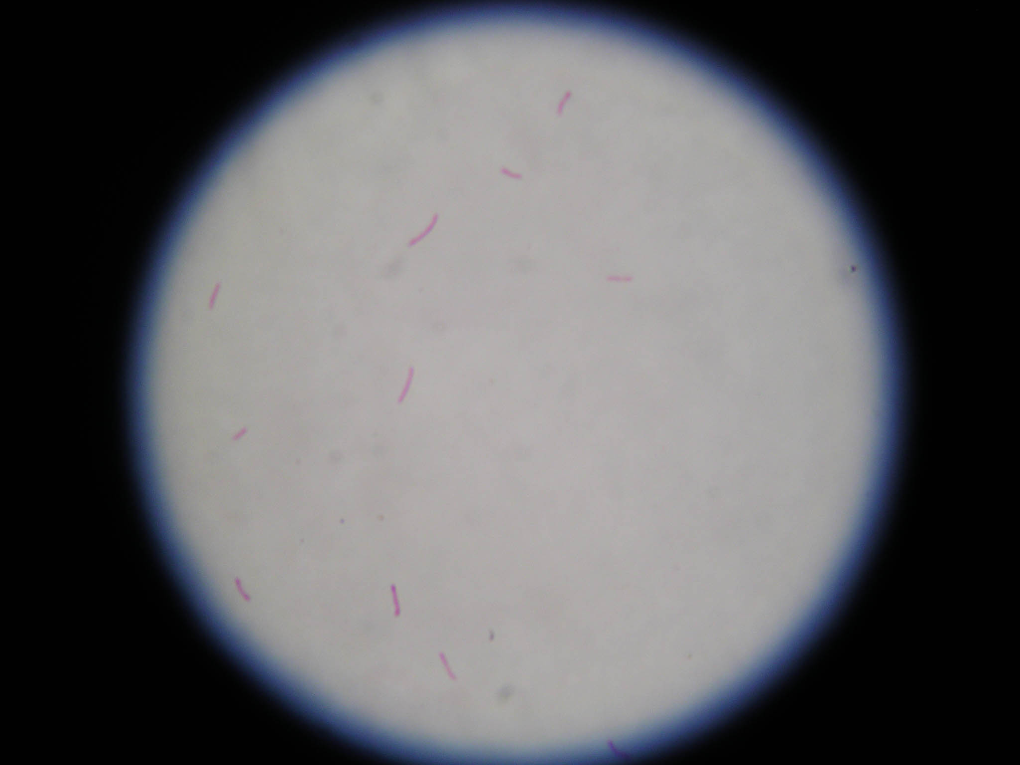 染色效果(Zeihl-Neelsen熱染法×1000)