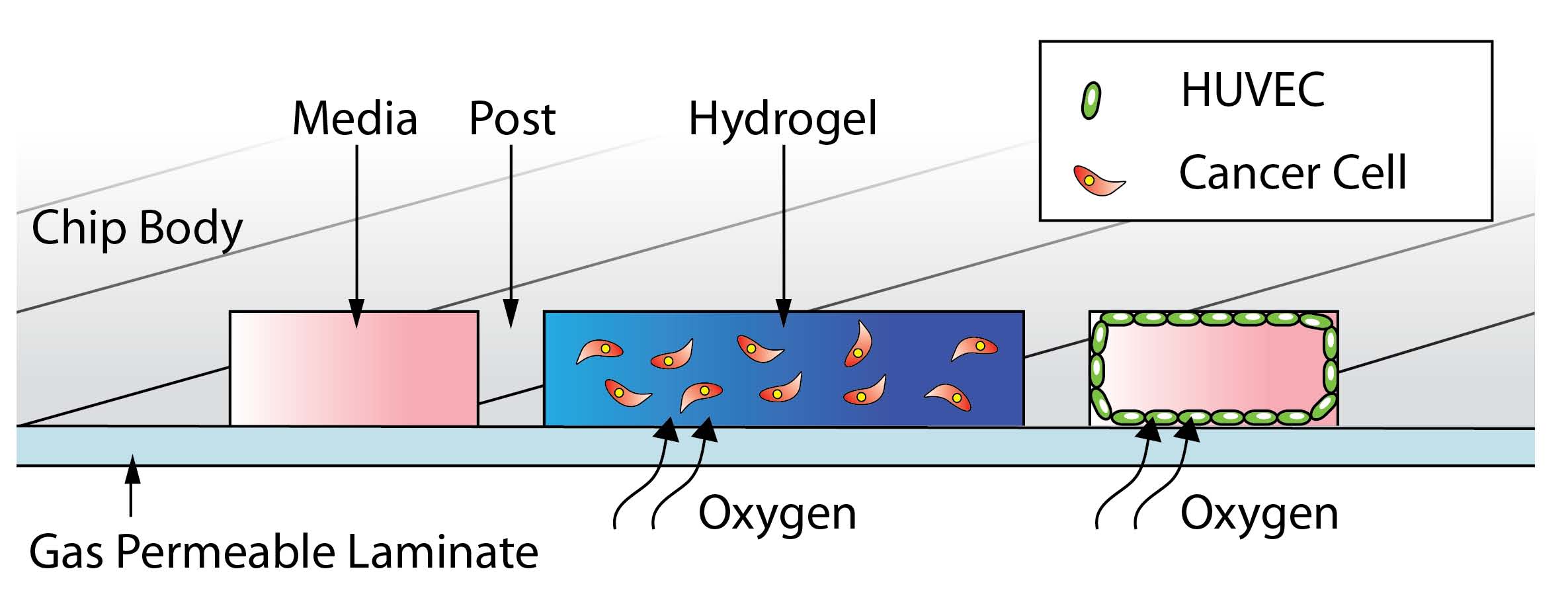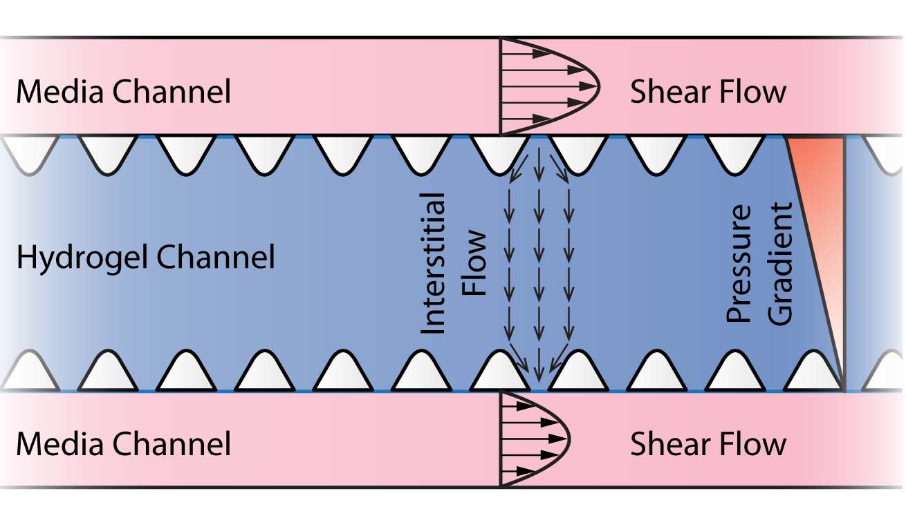 水凝膠貫穿在整個AIM芯片的間隙中,流體及化學(xué)物濃度梯度都可以被控制和調(diào)節(jié)。